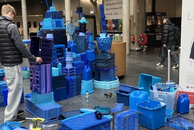 Nieuw kunstwerk van blauw plastic afval voor de Kinderbiënnale in 2024.