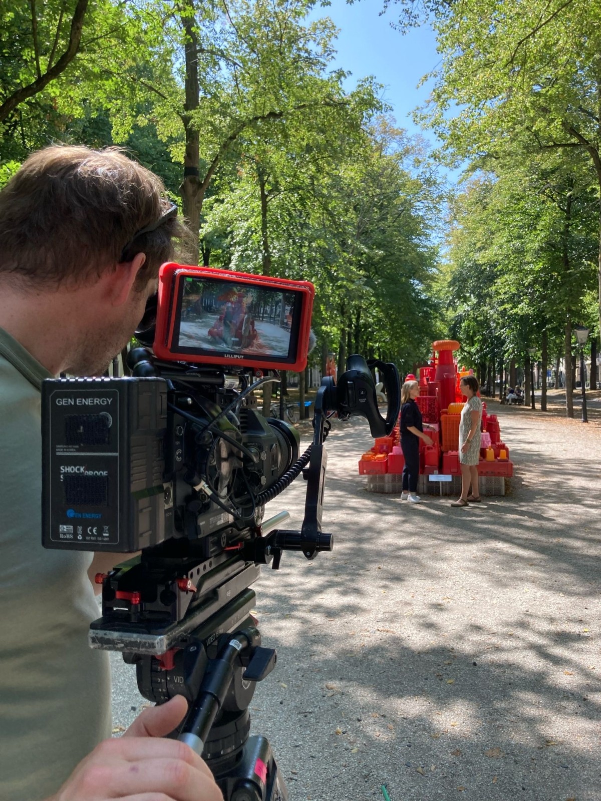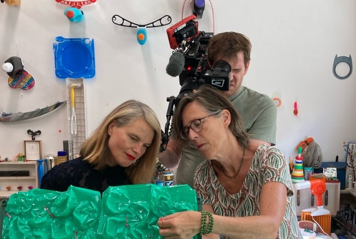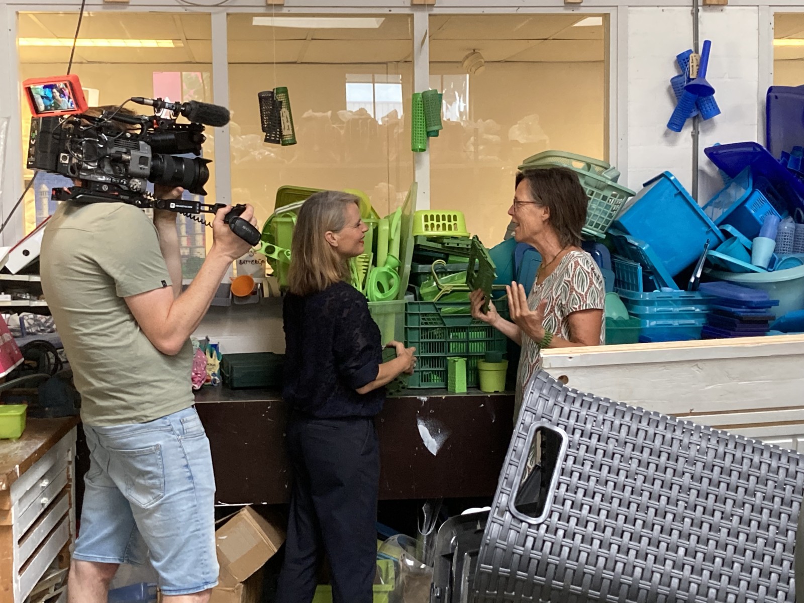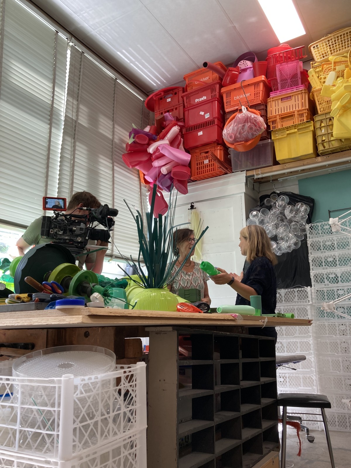 We trapten de dag af bij de Return Club, een van de plekken waar ik mijn plastic afval verzamel. Daarna namen ze een kijkje in mijn opgeruimde atelier, en sloten we af met een bezoek aan mijn kunstwerk op het Lange Voorhout.