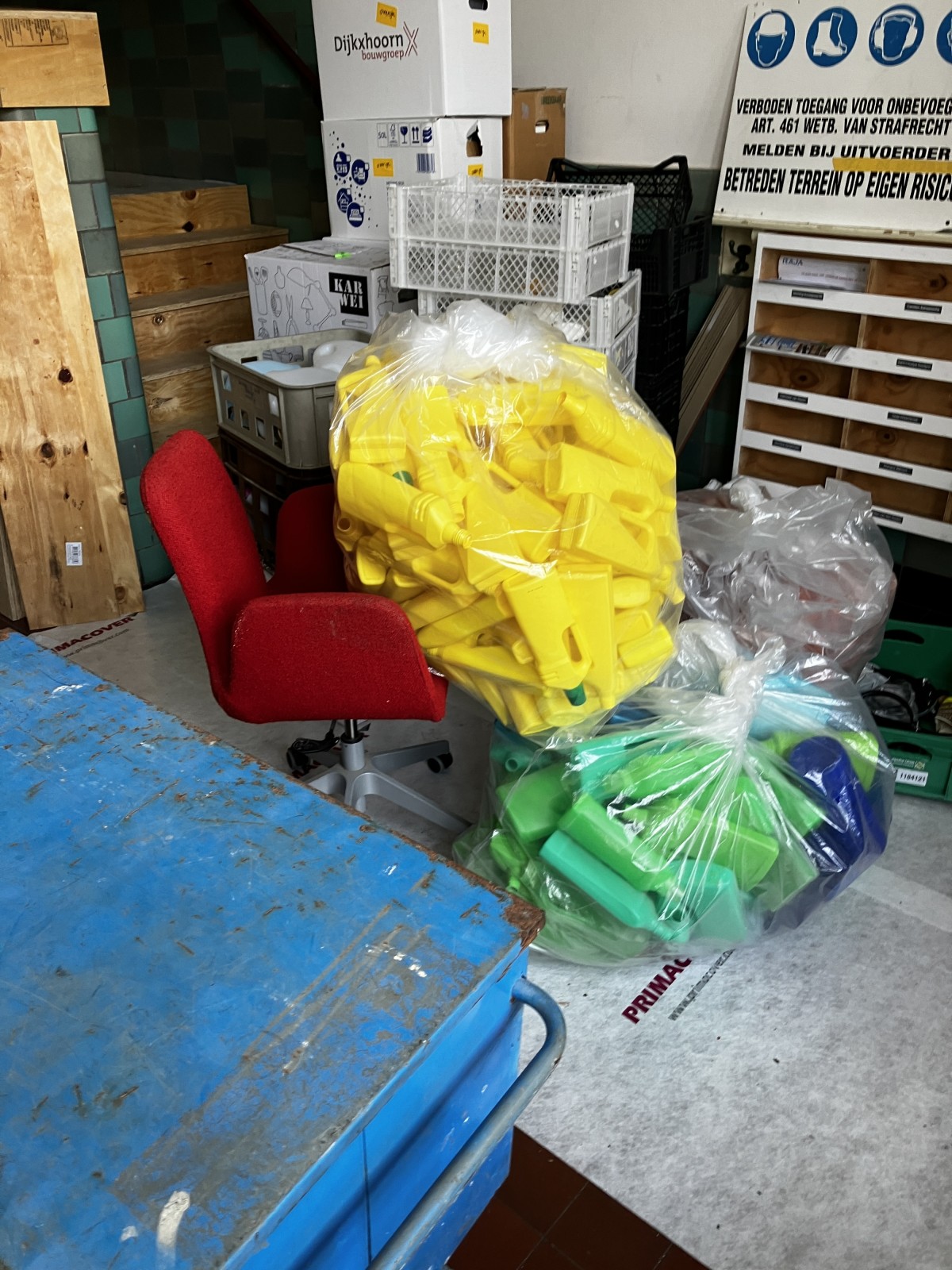De meeste spullen uit mijn atelier staan voor enkele weken elders in het pand opgeslagen. Het is niet de eerste keer dat ik mijn atelier moest leegruimen maar in de loop der jaren heb ik natuurlijk behoorlijk wat meer plastic afval om mij heen verzameld.
