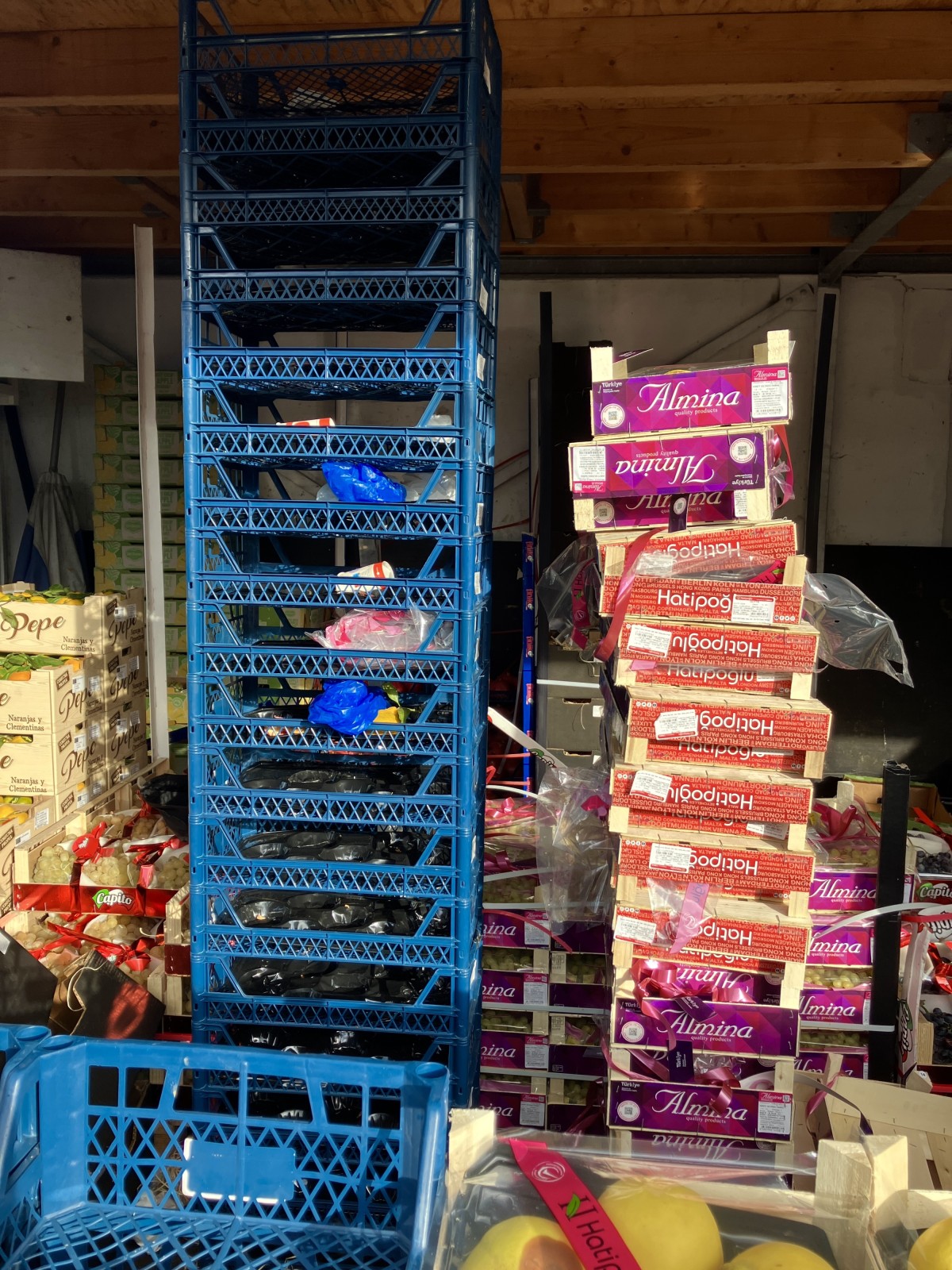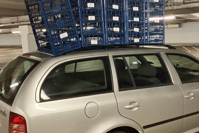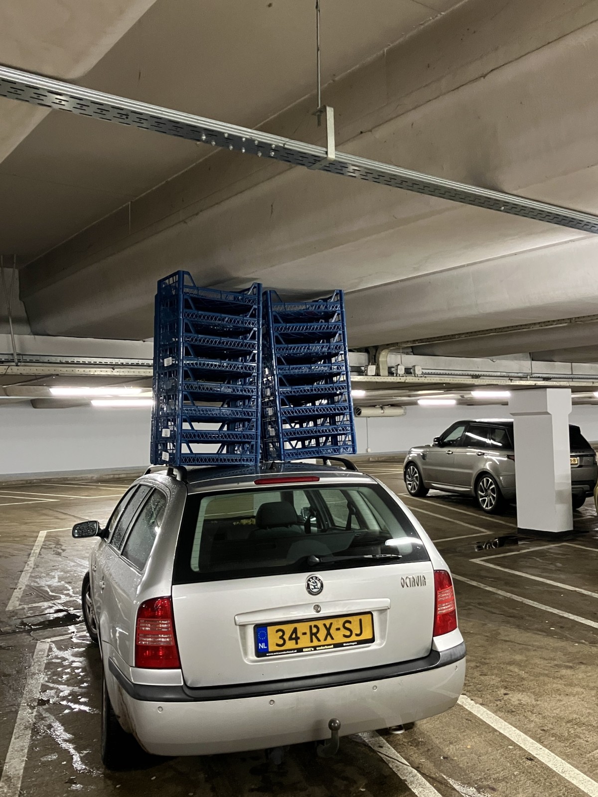 With the upcoming Kinderbiennale at the Groninger Museum and the accompanying children's activities, I need a lot of crates. I have built a network with regular stalls that alert me as soon as white or blue ones are available. These days, my Monday afternoons are dedicated to transport, where I can take around 40 to 50 crates at a time. Sometimes I even make three trips from the market to my studio. Often, I also manage to pass other collection points that afternoon. There are private individuals who have a large stock of plastic but also companies like WEPcircular.