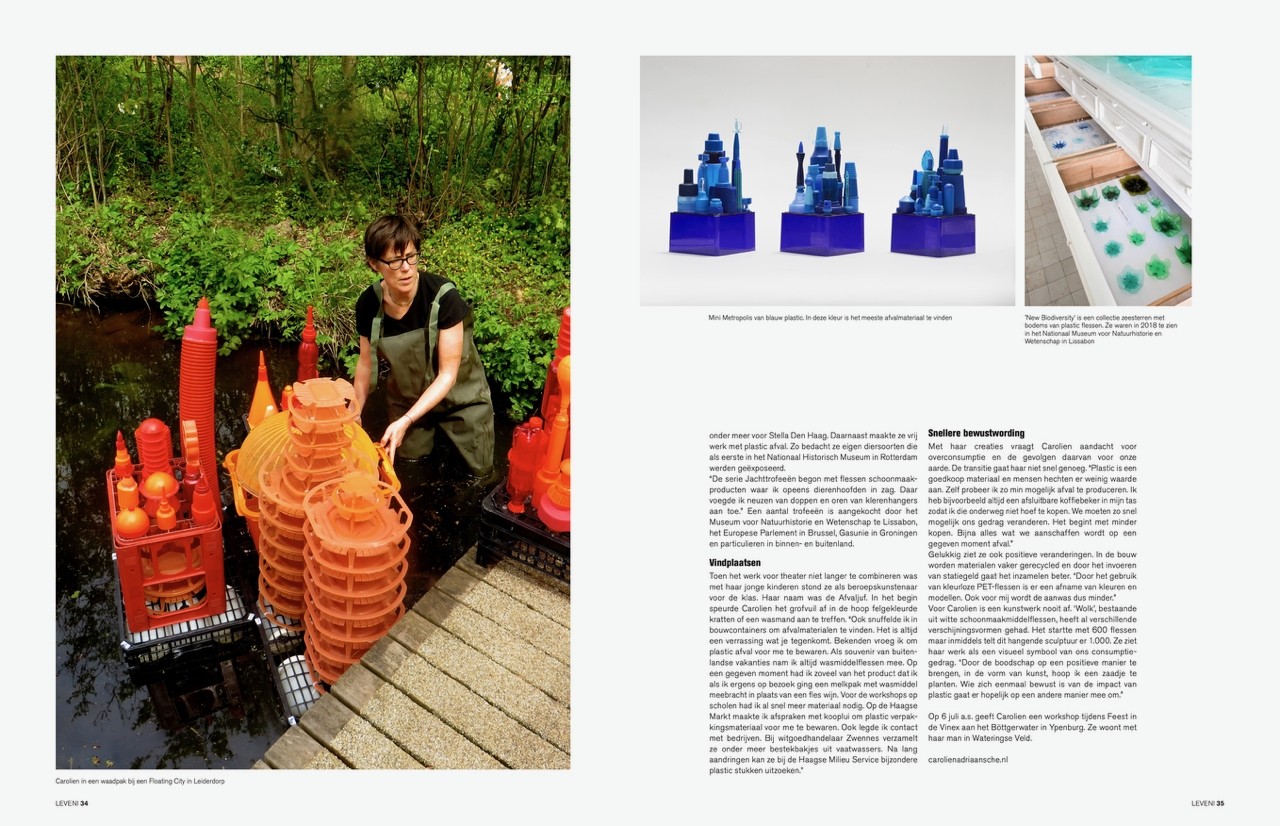 Carolien Adriaansche's work could be seen as an indictment of the throwaway society. The visual artist from The Hague turned her despair about the huge plastic waste mountain into something positive. "All that waste depressed me; making art actually makes me happy. By packaging the message in a fun way, it comes across better." Using finds from the junkyard and waste stations, she makes wondrous Floating Cities and Hunting Trophies.