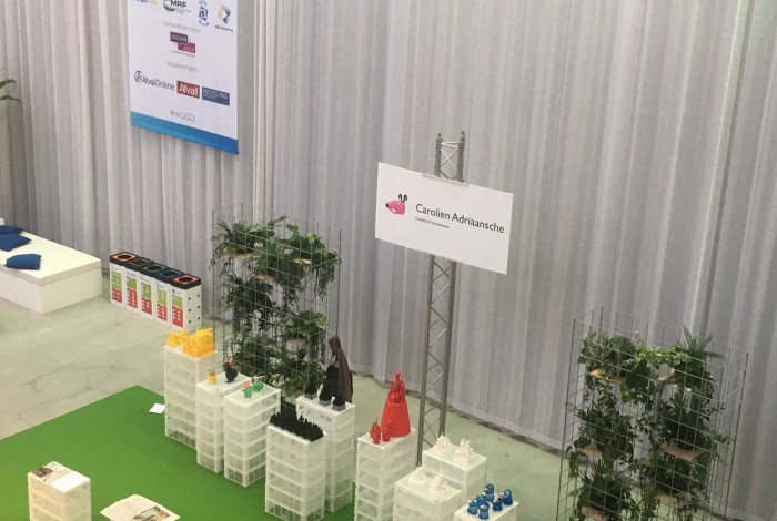 Today I stood with my recycled plastic art, quite appropriately, in front of the plastic plant decoration at the National Recycling Congress.