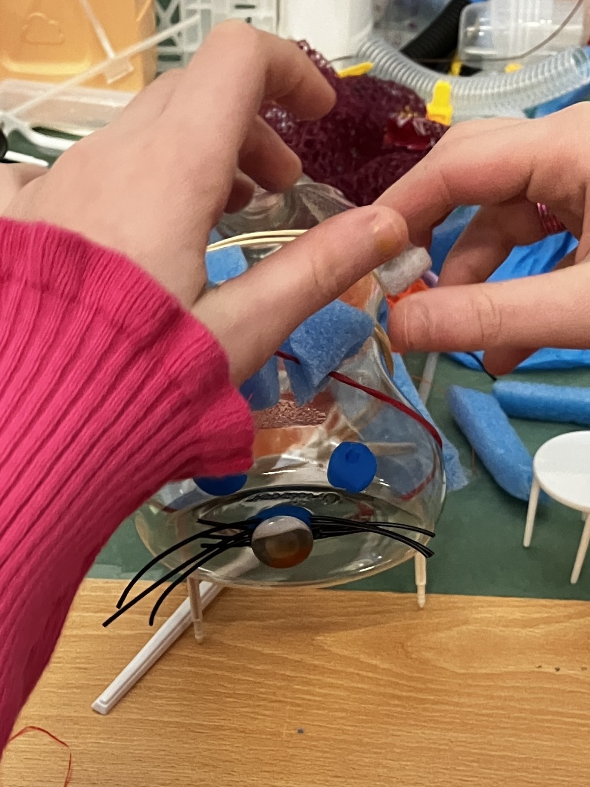 I also gave a workshop to the patients and their visiting family members last week. If it was not possible to leave the room, a basket with craft materials and a (digital) instruction was brought along.