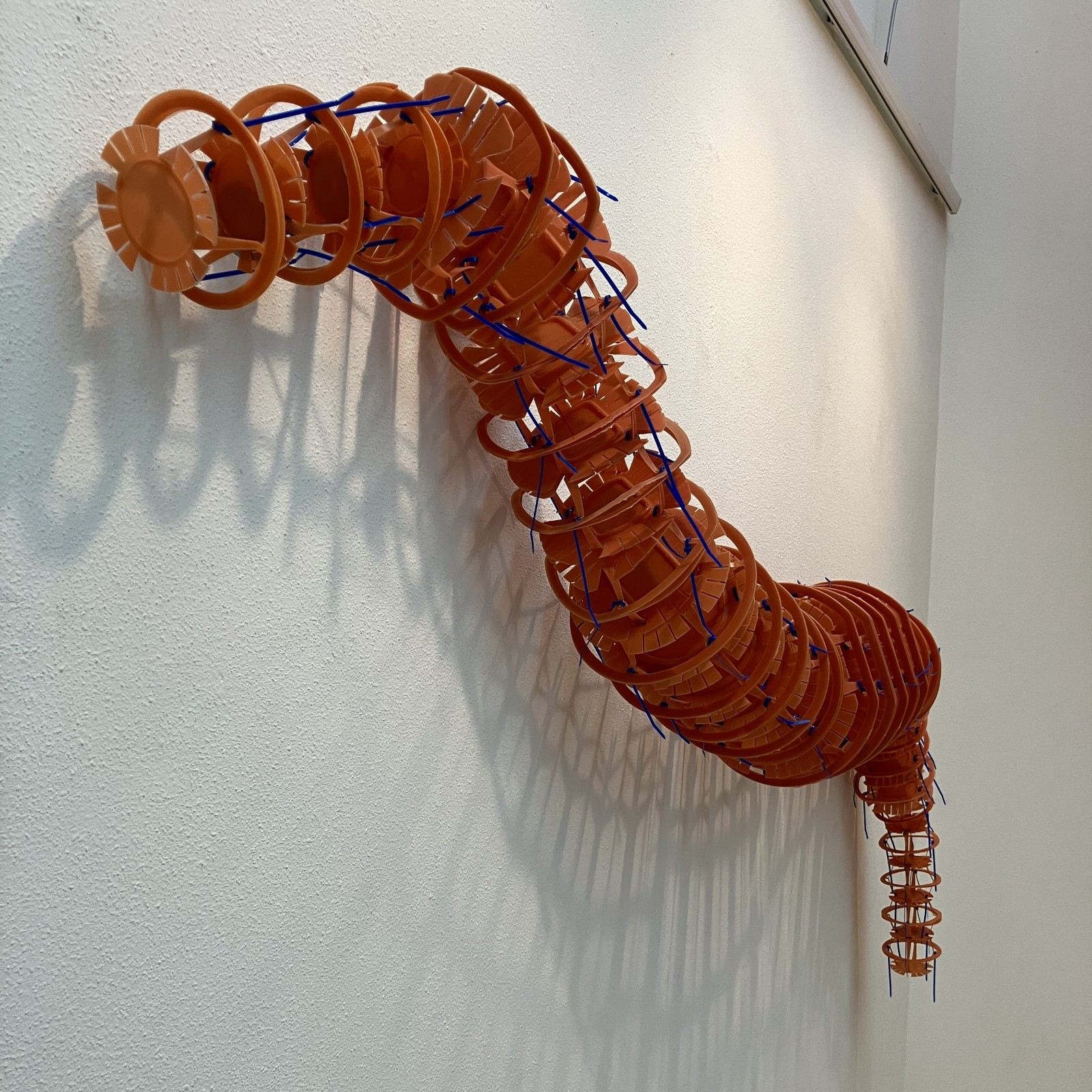 Dump seals, that's what these 'baskets' that this artwork is made of are called. They are used in construction to seal the channels in the hollow-core slabs. This is to prevent them from filling up during the concrete pour.